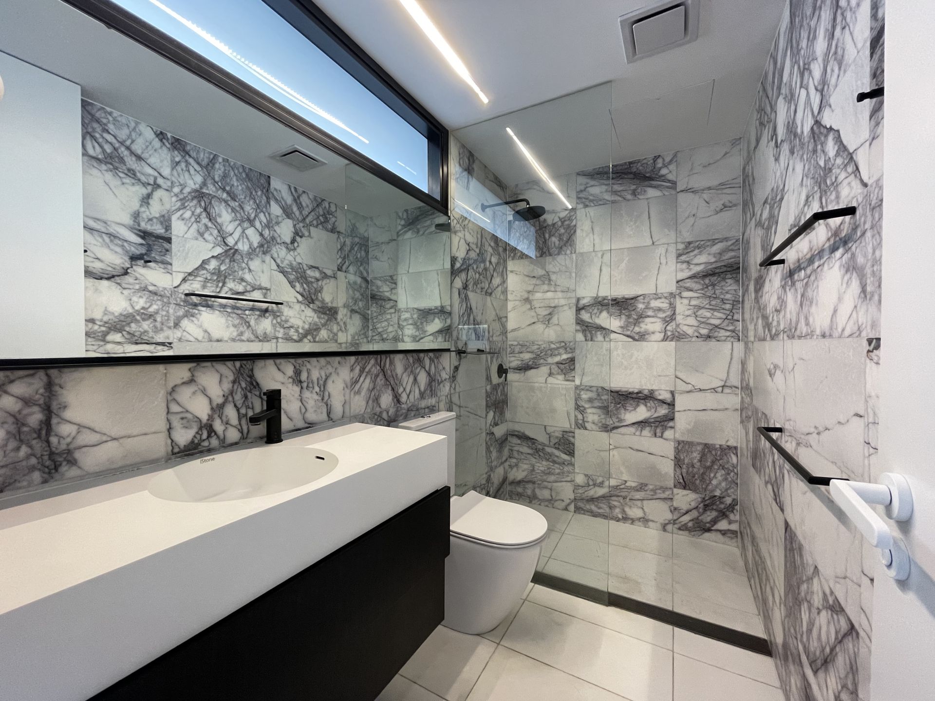 - Deluxe bathroom design with glass shower