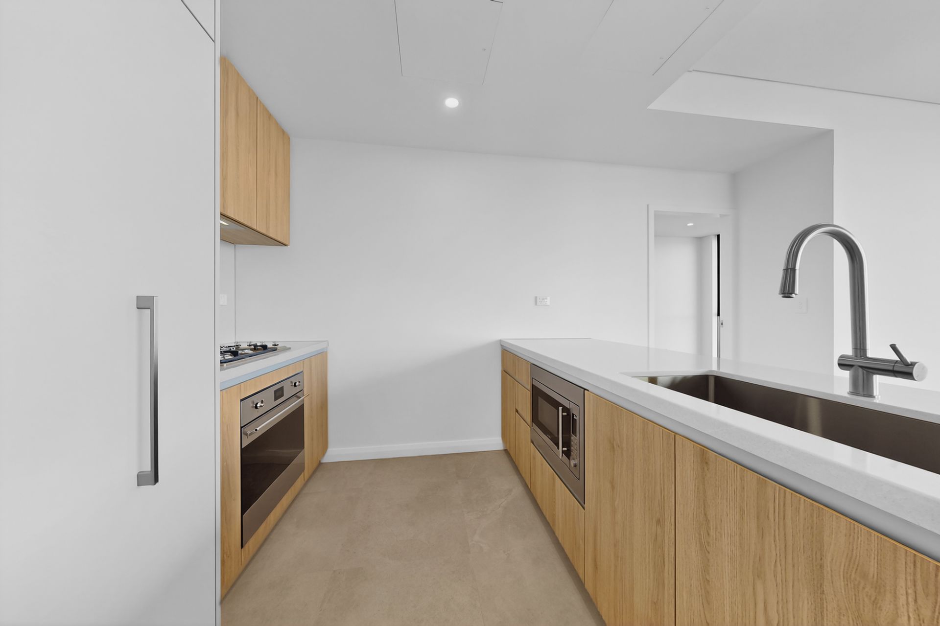 - Open plan kitchen with large island, built-in oven, cooktop, dishwasher