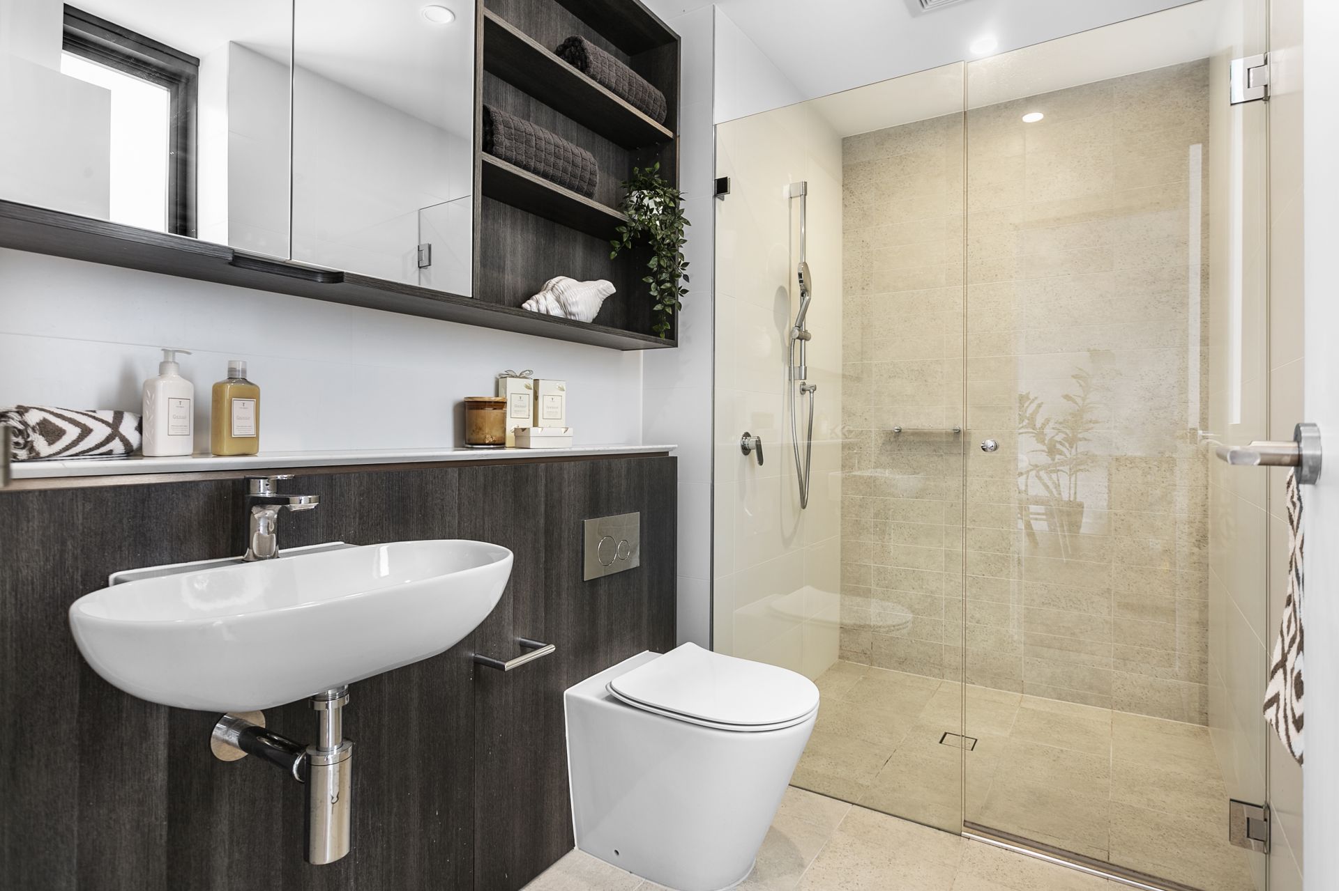 - Elegant bathroom design with frameless glass shower