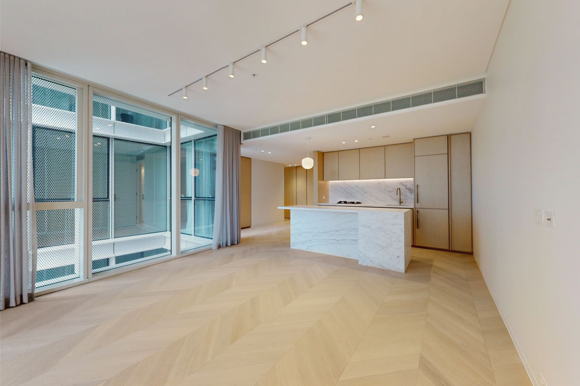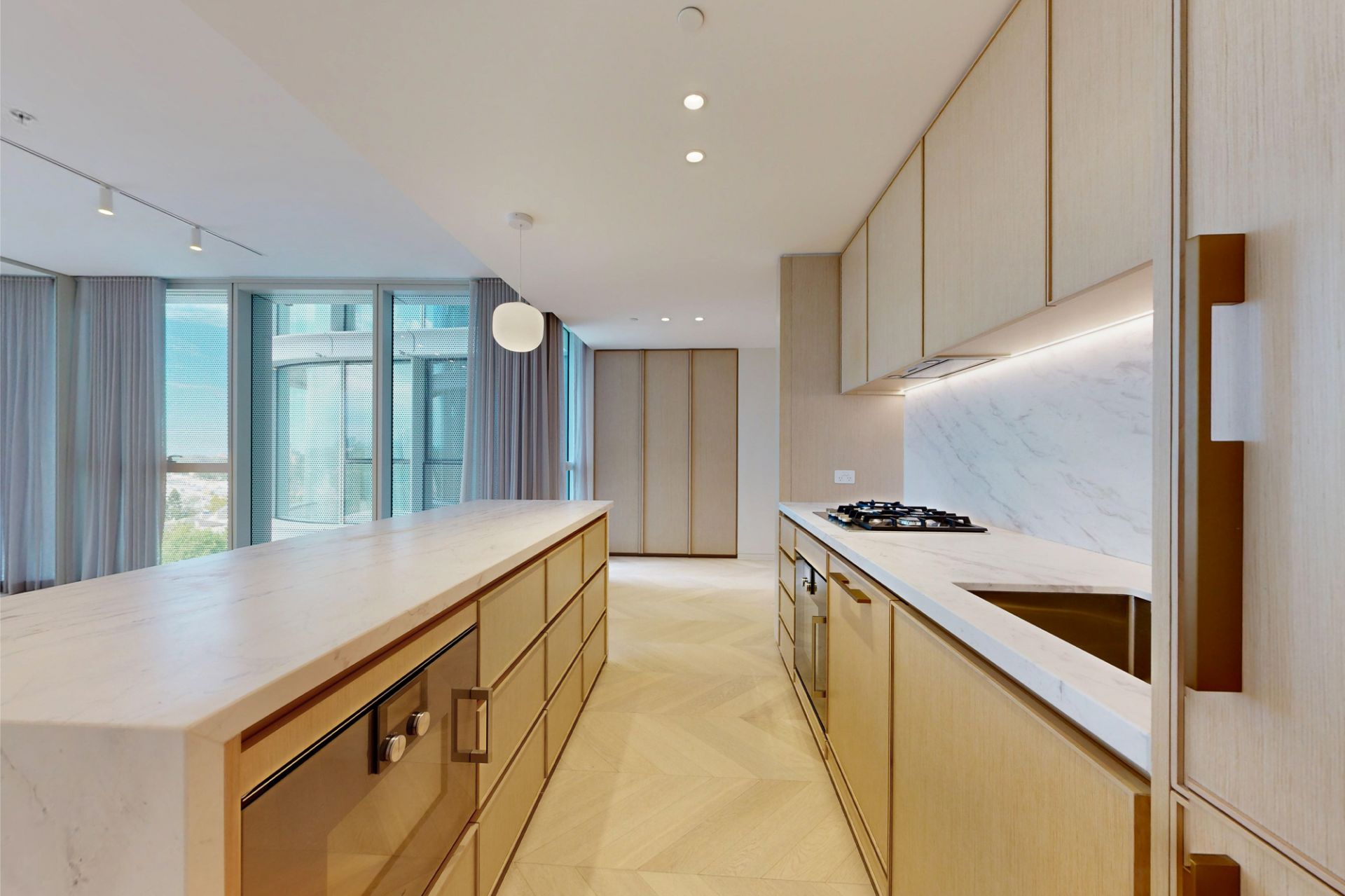 Generously sized and luxuriously appointed with open floorplan and floor to ceiling windows. Superior European appliances and designer bathrooms.