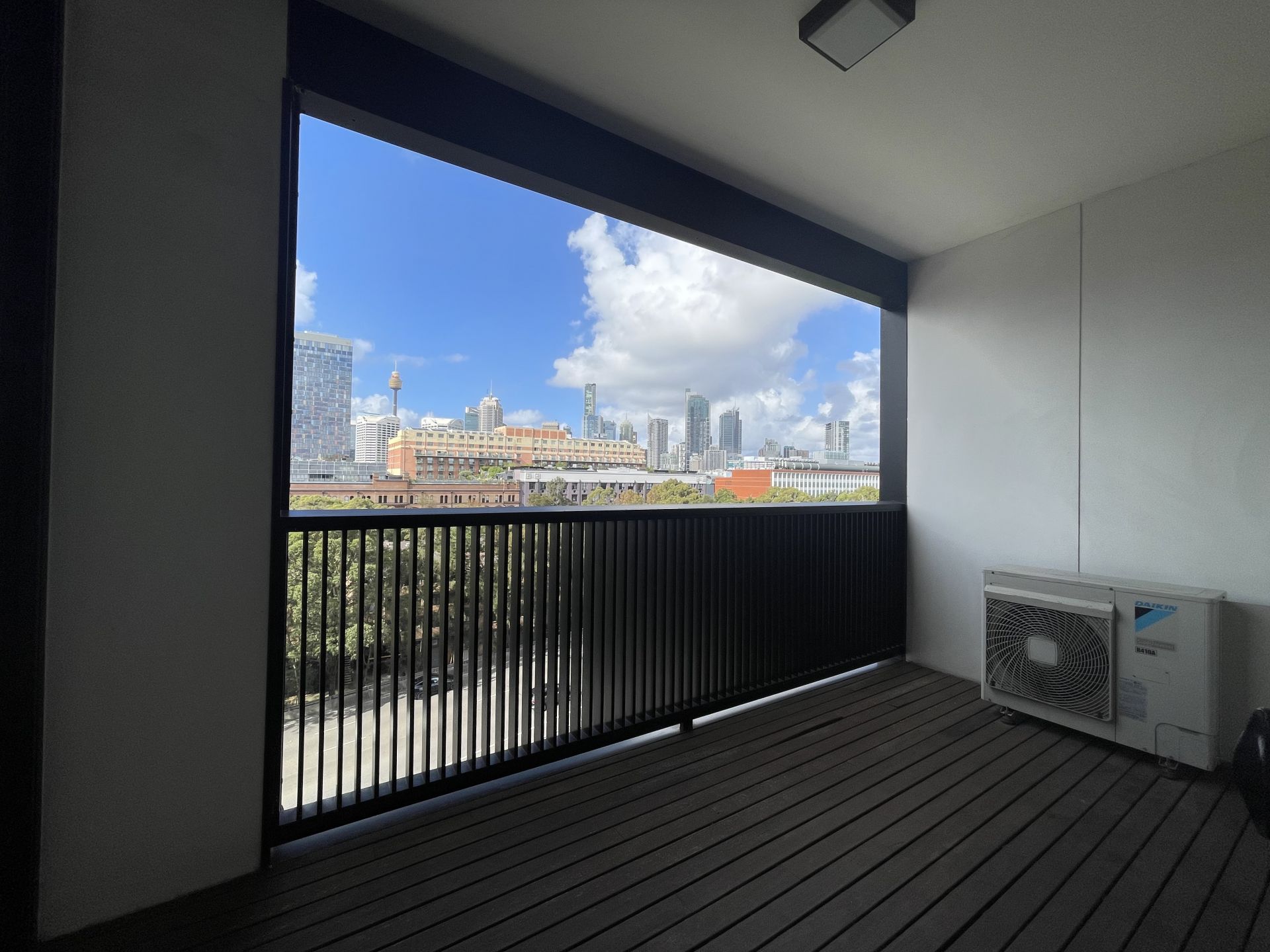- Balcony with city skyline views